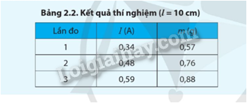 4) Bật nguồn điện. Đo và ghi cường độ dòng điện l và số chỉ m của cân theo Bảng 2.2.