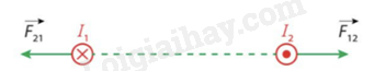 Dùng quy tắc bàn tay trái nghiệm lại chiều của lực từ giữa hai dòng điện thẳng như Hình 2.5.