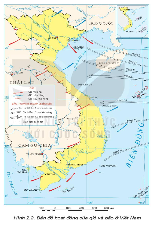 Tại sao trên bản đồ hình 2.2 SGK, gió Tây khô nóng lại có màu đỏ và kích thước nhỏ hơn các loại gió khác.