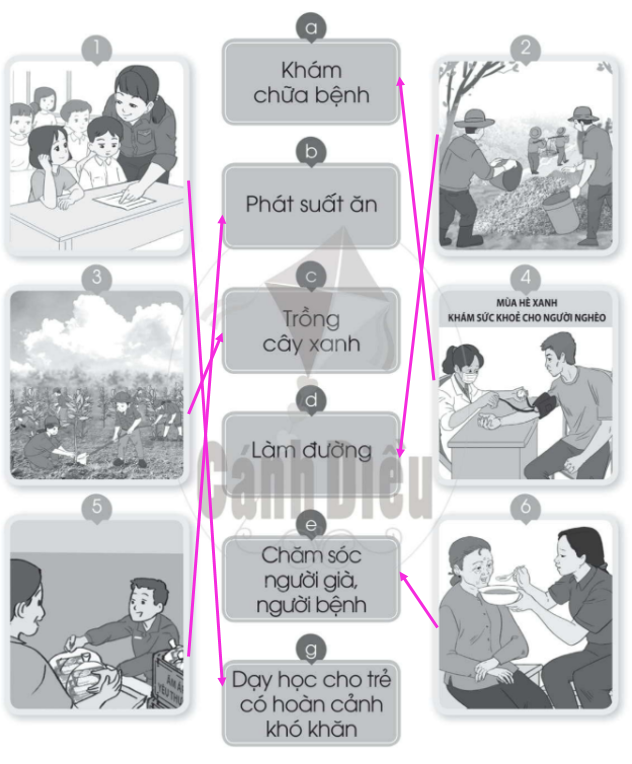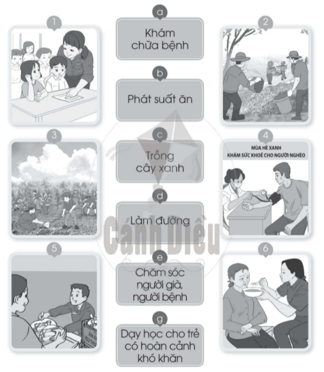 Nối hình vẽ với tên công việc tình nguyện thích hợp.