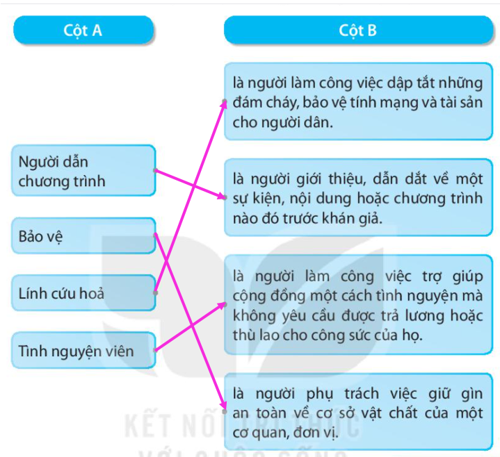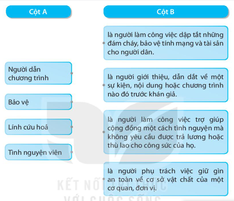 Nối cột A với cột B cho phù hợp về công việc, nghề nghiệp.