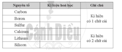 a) Hoàn thành những thông tin còn thiếu về tên hoặc kí hiệu hoá học của các nguyên tố trong bảng sau.