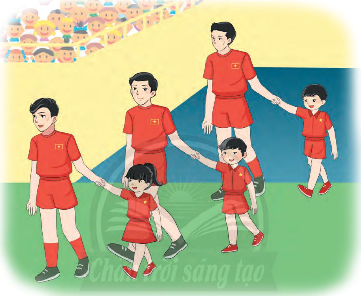 Quan sát tranh và cho biết hoạt động trong bức tranh diễn ra ở đâu. Những bông hoa nhỏ trên sân. Hình ảnh trẻ em nhắc nhở các cầu thủ điều gì. Khi có trẻ em, những cổ động viên nóng nảy sẽ thế nào. Tập viết: Ă, Â. Nghe – viết. Thay hình ngôi sao bằng chữ ng hoặc chữ ngh. Thay hình chiếc lá bằng dấu hỏi hoặc dấu ngã. Nói lời xin phép cha mẹ hoặc ông bà cho em tham gia đội bóng đá hoặc đội cổ vũ của lớp. Viết vào vở điều em vừa nói. Nói với bạn bài thơ hoặc câu chuyện về thiếu nhi mà em đã đọc.