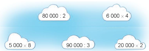 Vậy các phép tính có cùng kết quả là: 80 000 : 2; 5 000 x 8; 20 000 x 2.