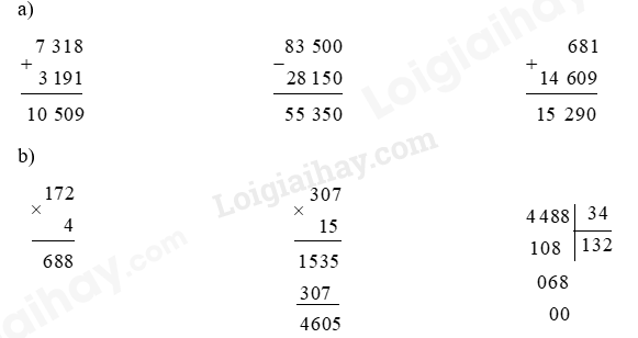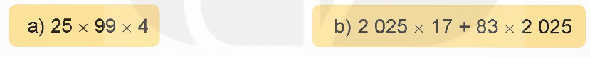 a) Áp dụng tính chất giao hoán và kết hợp của phép nhân để nhóm các số có tích là số tròn trăm.