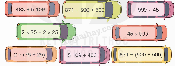 Không thực hiện phép tính, hãy tìm các cặp biểu thức có giá trị bằng nhau.