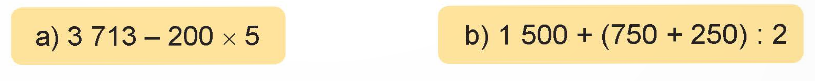 – Biểu thức có chứa phép cộng, trừ, nhân, chia thì ta thực hiện phép nhân, chia trước; thực hiện phép cộng, trừ sau.
