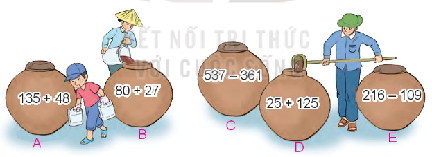 Những chum ghi phép tính có kết quả bằng nhau là B, E.