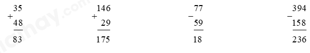 Bước 2: Cộng hoặc trừ các chữ số lần lượt từ phải sang trái.