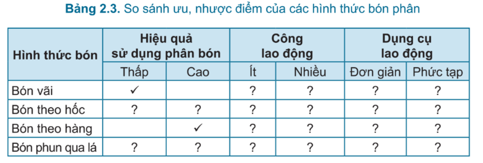 – Quan sát hình 2.5, ta thấy có 3 phương thức gieo trồng: