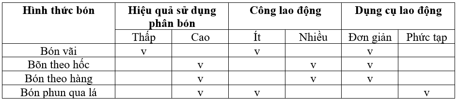 – Đọc mục 2.1 về Bón lót để trả lời câu hỏi.