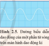 Đường hiển thị trên màn hình dao động kí điện tử khi đo tần số của một sóng âm có dạng như Hình 2.5. Bộ điều chỉnh thời gian của dao động kí được đặt sao cho giá trị của mỗi ô trên trục nằm ngang là 1 ms/độ chia. Hãy nêu cách xác định tần số của sóng âm theo thí nghiệm này.