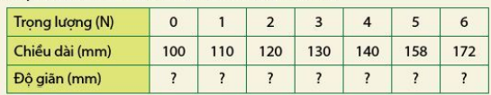 Bảng dưới đây là số liệu của thí nghiệm về độ giãn của lò xo: