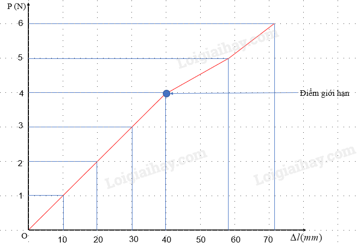 Trong đồ thị, tỉ số \(\frac{F}{{\Delta l}}\) chính là hệ số góc, góc hợp bởi giữa trục hoành và đồ thị càng lớn thì hệ số góc càng lớn và ngược lại