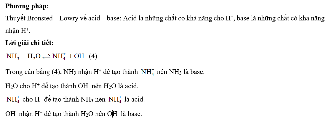 Câu hỏi 2: Trong cân bằng (4), hãy chỉ ra hai acid và hai base. Giải thích.