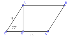\( \Rightarrow {S_{ABCD}} = AE.DC = 12.\sin {70^0}.15 \approx 169,1\,cm^2\)