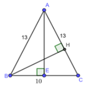 Mặt khác: \({S_{ABC}} = \dfrac{{AC.BH}}{2} \Leftrightarrow 60 = \dfrac{{13.BH}}{2}\)\( \Rightarrow BH = \dfrac{{120}}{{13}}\)
