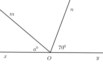 Cho góc bẹt \(xOy\). Trên cùng một nửa mặt phẳng bờ \(xy\) vẽ các tia \(Om;On\) sao cho \(\widehat {xOm} = a^\circ \,\left( {a < 180} \right)\) và \(\widehat {yOn} = 70^\circ .\) Với giá trị nào của \(a\) thì tia \(On\) là tia phân giác của \(\widehat {yOm}\).