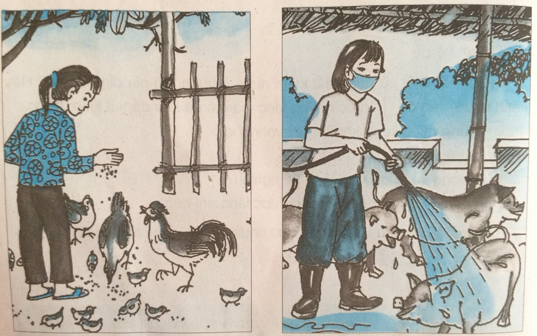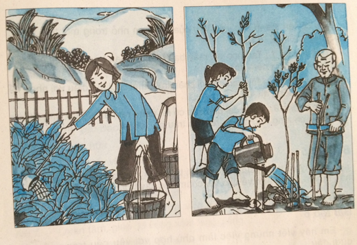 – Tranh 3: Tưới rau – chăm sóc rau.