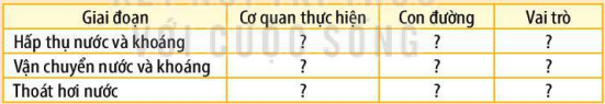 Trình bày quá trình trao đổi nước và khoáng ở nhóm thực vật trên cạn bằng cách hoàn thành bằng mẫu sau vào vở.