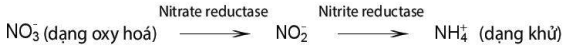 Quá trình chuyển nitrogen từ dạng NO3 thành dạng NH4+ gọi là quá trình khử nitrate. Quá trình này diễn ra qua hai bước dưới sự xúc tác của enzyme nitrate reductase và nitrite reductase theo sơ đồ sau: