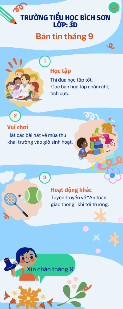 Viết bảng tin tháng 9 của lớp em dựa vào gợi ý: