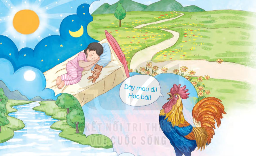 c. Bạn nhỏ nghe thấy lời của chú gà trống trong giấc mơ.