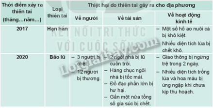 Phương pháp giải: Xây dựng báo cáo về các thiên tai và thiệt hại do thiên tai gây ra sau đó trình bày, chia sẻ với mọi người.