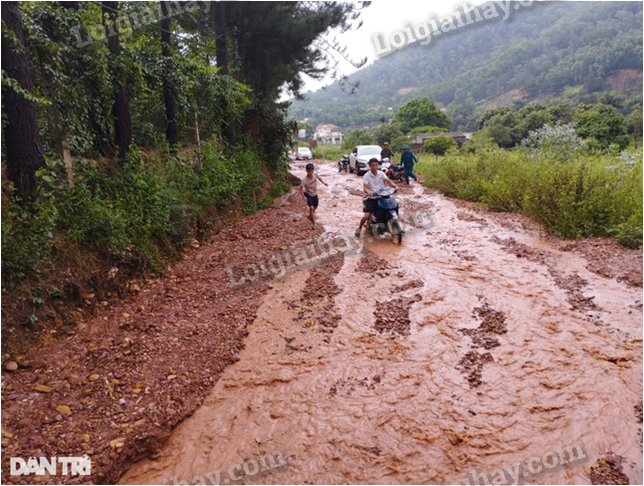 Trận mưa lớn sáng 4/8 đã khiến một lượng lớn bùn đất tràn xuống tuyến đường dân sinh tại thôn Phú Ninh, xã Minh Phú, Sóc Sơn (gần hồ Ban Tiện).