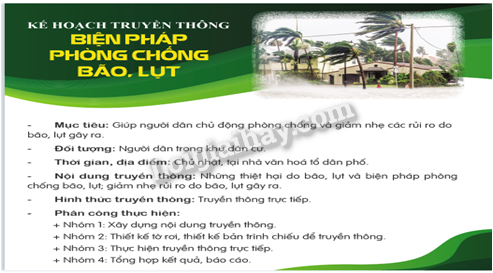 Đề bài: Xây dựng kế hoạch truyền thông về biện pháp phòng chống thiên tai và giảm nhẹ rủi ro khi gặp thiên tai