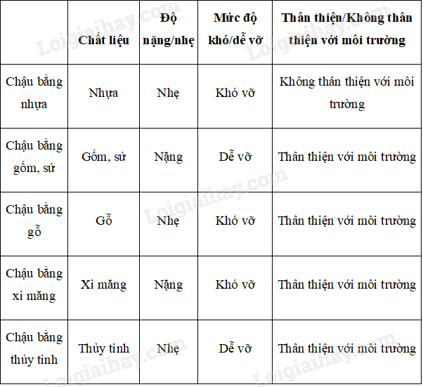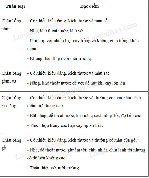 Em hãy cho biết đặc điểm của các chậu dưới đây.
