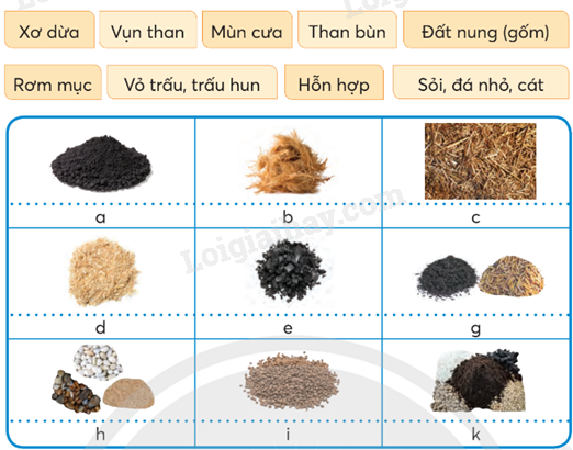 Em hãy quan sát và ghép tên gọi với giá thể có trong hình dưới đây cho phù hợp.