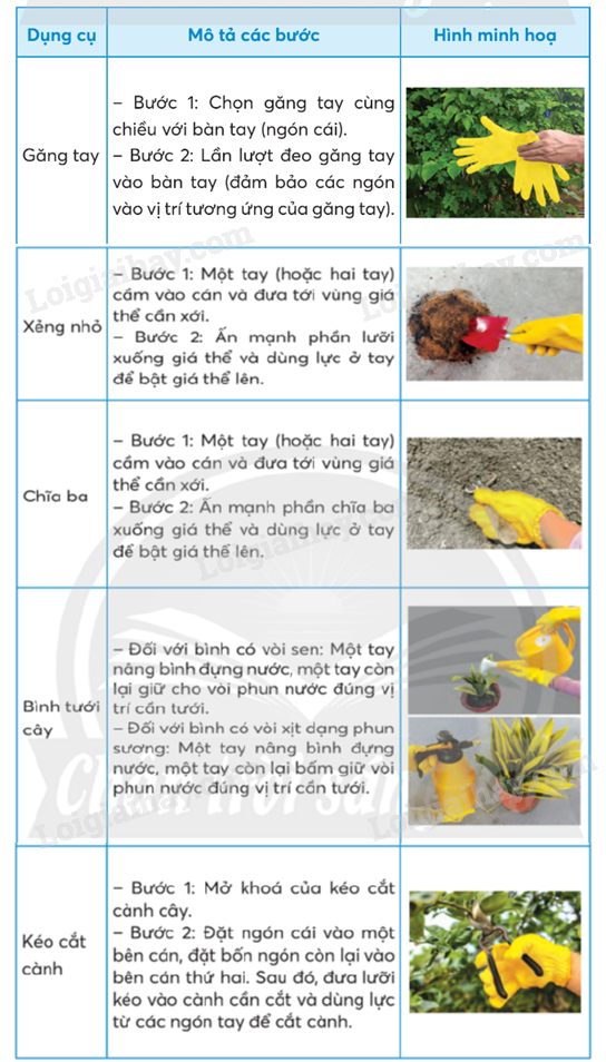 Em hãy cùng các bạn thực hành sử dụng một số dụng cụ trồng hoa và cây cảnh theo các bước dưới đây.