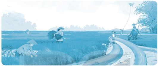 Em quan sát bức tranh và hoạt động của người và vật trong tranh để hoàn thành bài tập.