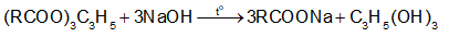 – Phương trình hóa học ở dạng tổng quát của phản ứng xà phòng hoá chất béo: