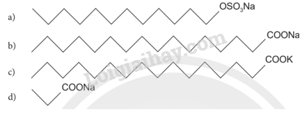 – Phần đuôi kị nước của xà phòng và chất giặt rửa là gốc hydrocarbon (CxHy -; thường x ≥ 15) nên chất (d) CH3CH2COONa không phải là thành phần chính trong các xà phòng hay chất giặt rửa.