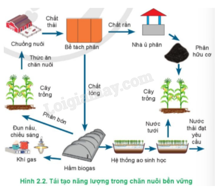 – Chất thải chăn nuôi ở mô hình này được xử lí triệt để bằng công nghệ tiên tiến như biogas, ép tách phân, ủ phân, … tạo ra phân bón cho trồng trọt, nhiên liệu phục vụ cho sản xuất và đời sống, giúp bảo vệ môi trường và tái tạo năng lượng.