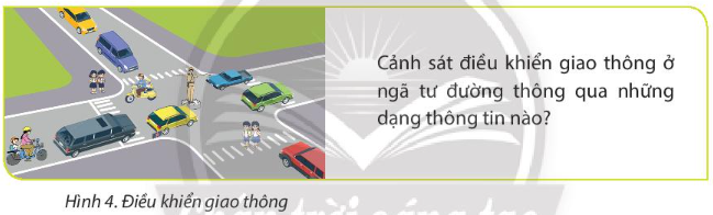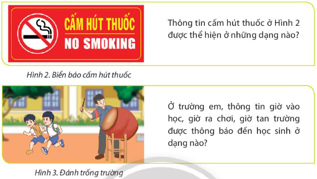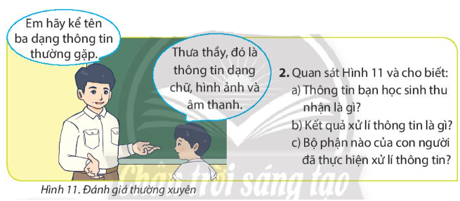 – Thông tin bạn học sinh thu nhận: câu hỏi của thầy giáo “Em hãy kể tên ba dạng thông tin hay gặp.”.