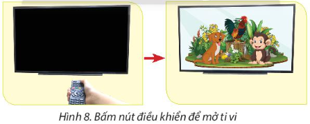 a. Quan sát Hình 8 và cho biết nhận được thông tin bấm nút điều khiển, ti vi đã thực hiện điều gì?