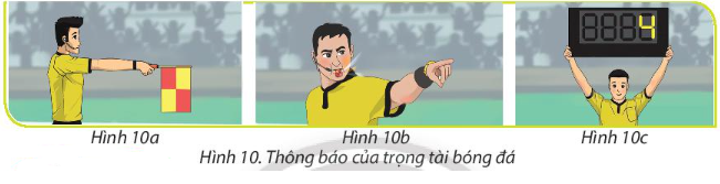 Quan sát và chỉ ra trọng tài đã sử dụng chữ, âm thanh hay hình ảnh để thể hiện thông tin trong mỗi hình dưới đây. Thông tin đó là gì?
