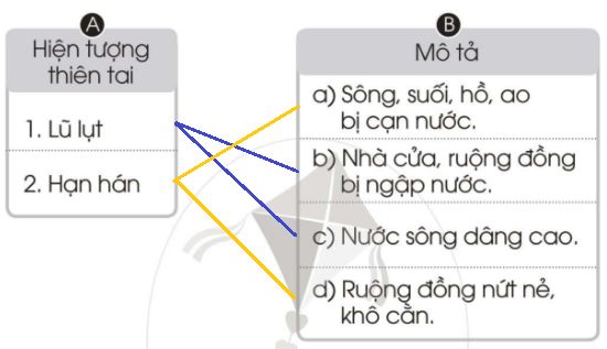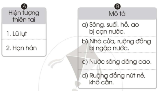 Nối các hiện tượng thiên tai ở cột A với mô tả hiện tượng đó ở cột B cho phù hợp.