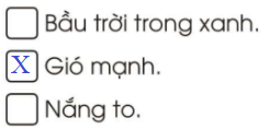 3. Đánh dấu X vào ô trống trước hiện tượng thường xuất hiện khi có bão.