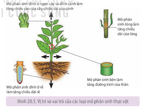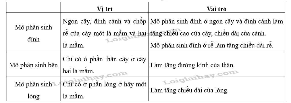 Phân biệt các loại mô phân sinh ở thực vật về vị trí và vai trò của mỗi loại.