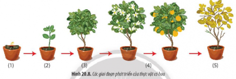 Quan sát Hình 20.8, hãy mô tả quá trình phát triển của thực vật có hoa