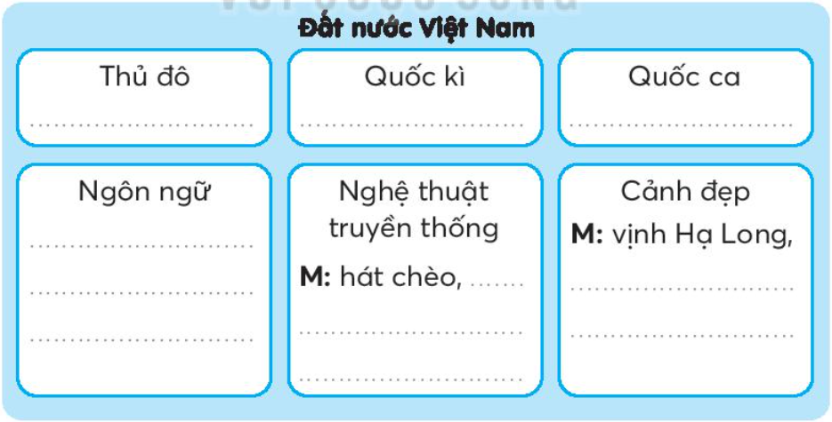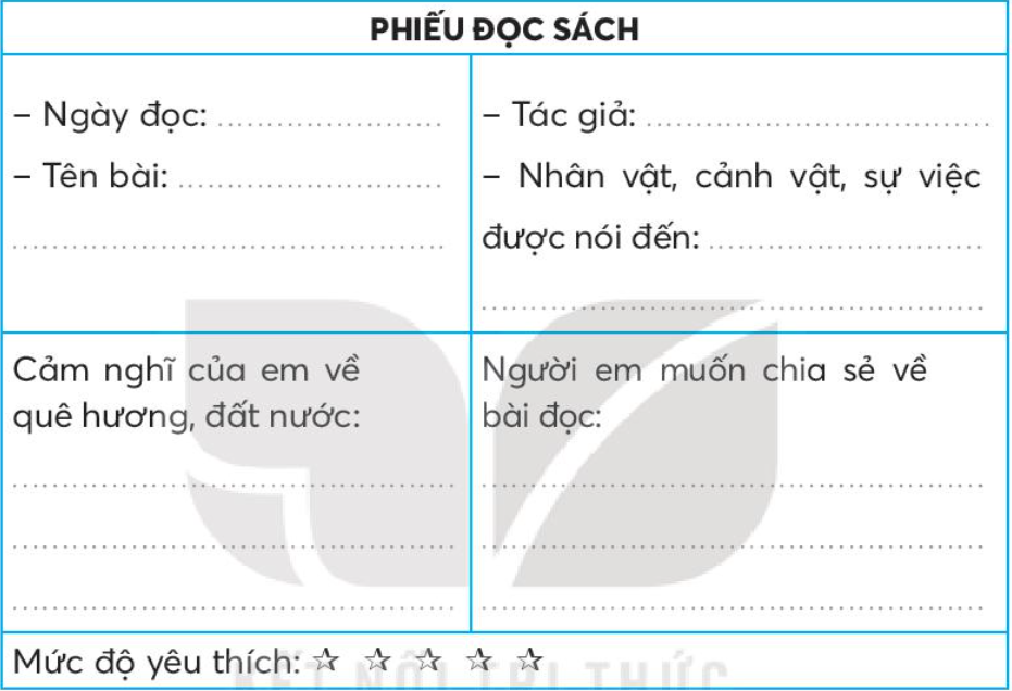 Đọc câu chuyện, bài văn, bài thơ,… về quê hương, đất nước và viết thông tin vào phiếu đọc sách.