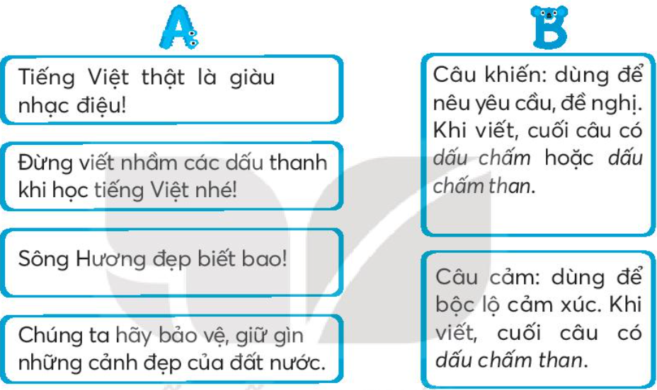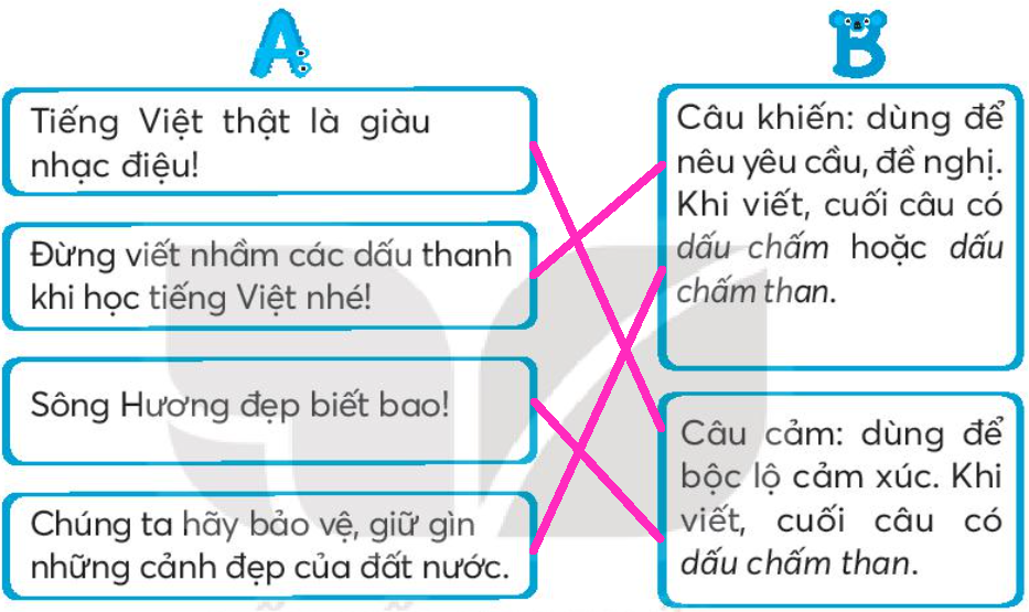Nối câu ở cột A với kiểu câu thích hợp ở cột B.
