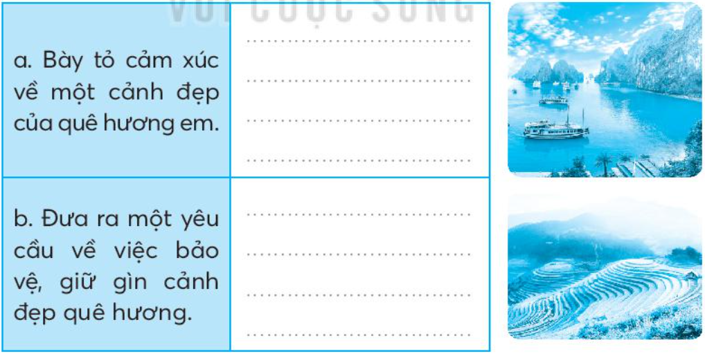 a. Bày tỏ cảm xúc về một cảnh đẹp của quê hương em.