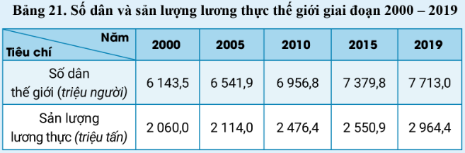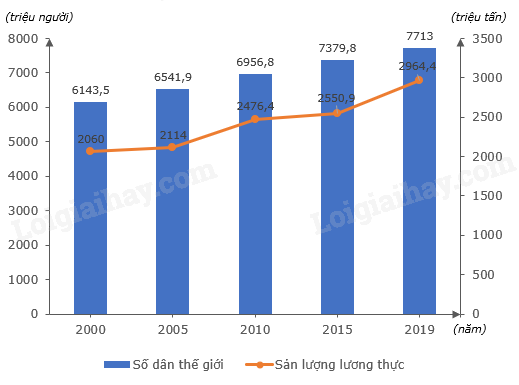Biểu đồ số dân và sản lượng lương thực của thế giới giai đoạn 2000 – 2019