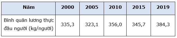 Bảng bình quân lương thực đầu người của thế giới giai đoạn 2000 – 2019