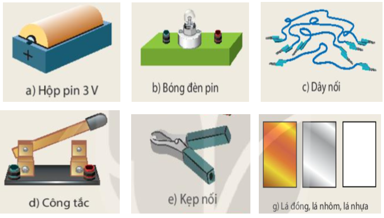 – Vật dẫn điện: ruột bút chì, đoạn dây nhôm.